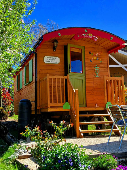 Gîte insolite, La Fée Favie est une roulotte gîtane aménagée pour recevoir 2 à 3 personnes pour une nuit ou une semaine. Avec sa salle de douche et sa cuisine aménagée, vous êtes autonome. Profitez de la terrasse privée pour observer la vue ! Elle a fait peau neuve en Mars 2025,la toiture et l'habillage extérieur!